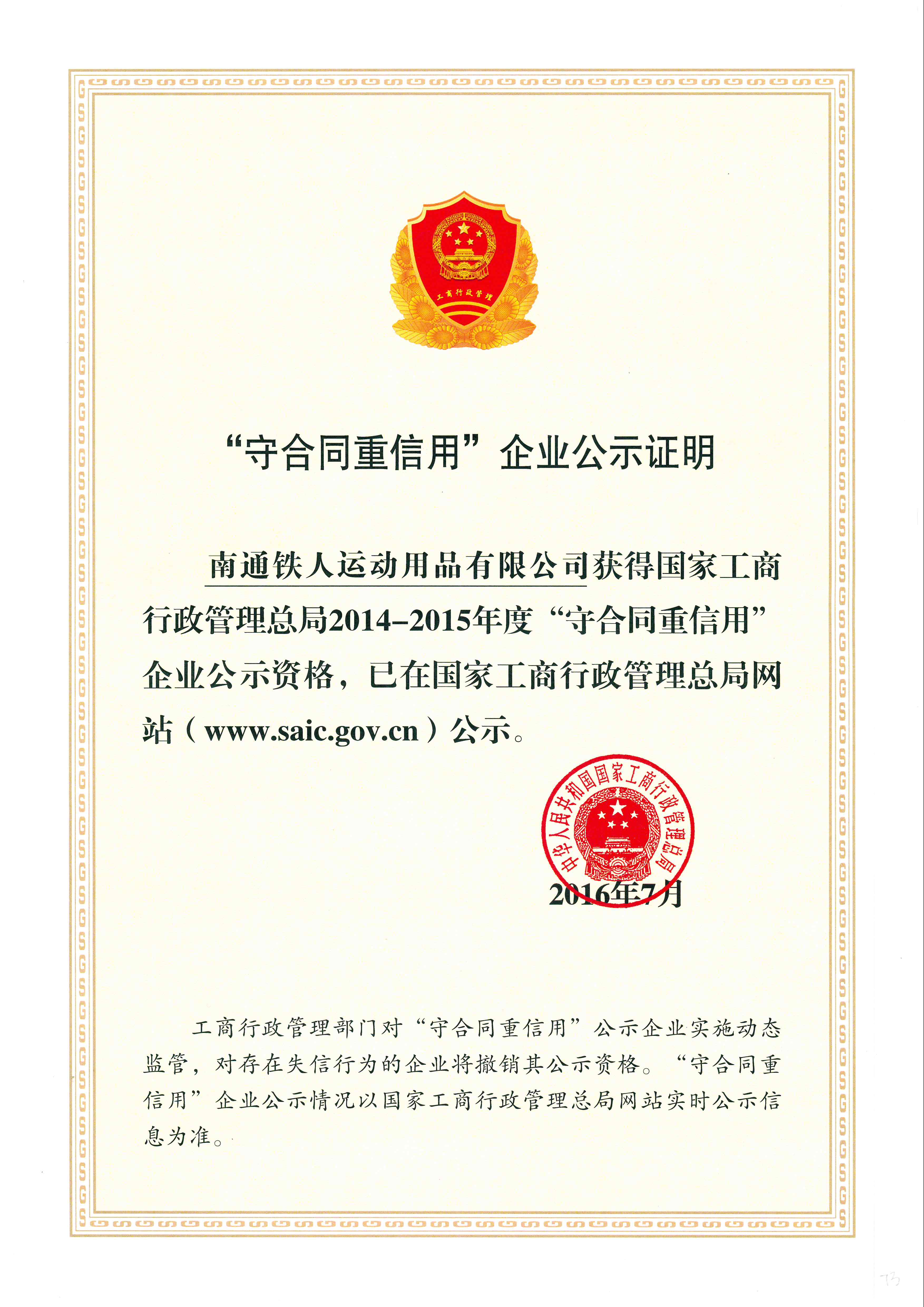| 2015 | 全國(guó)“守合同重信用”企業(yè) | 國(guó)家工商行政管理總局 |