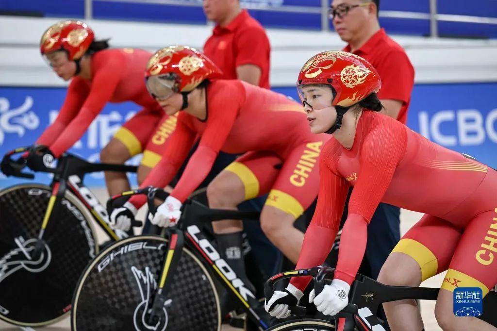 中國(guó)女隊(duì)鮑珊菊、苑麗穎、郭裕芳三人三次刷新亞運(yùn)會(huì)記錄,并以46.376秒的成績(jī)?cè)趫?chǎng)地自行車女子團(tuán)體競(jìng)速賽決賽中奪冠,打破亞洲紀(jì)錄。